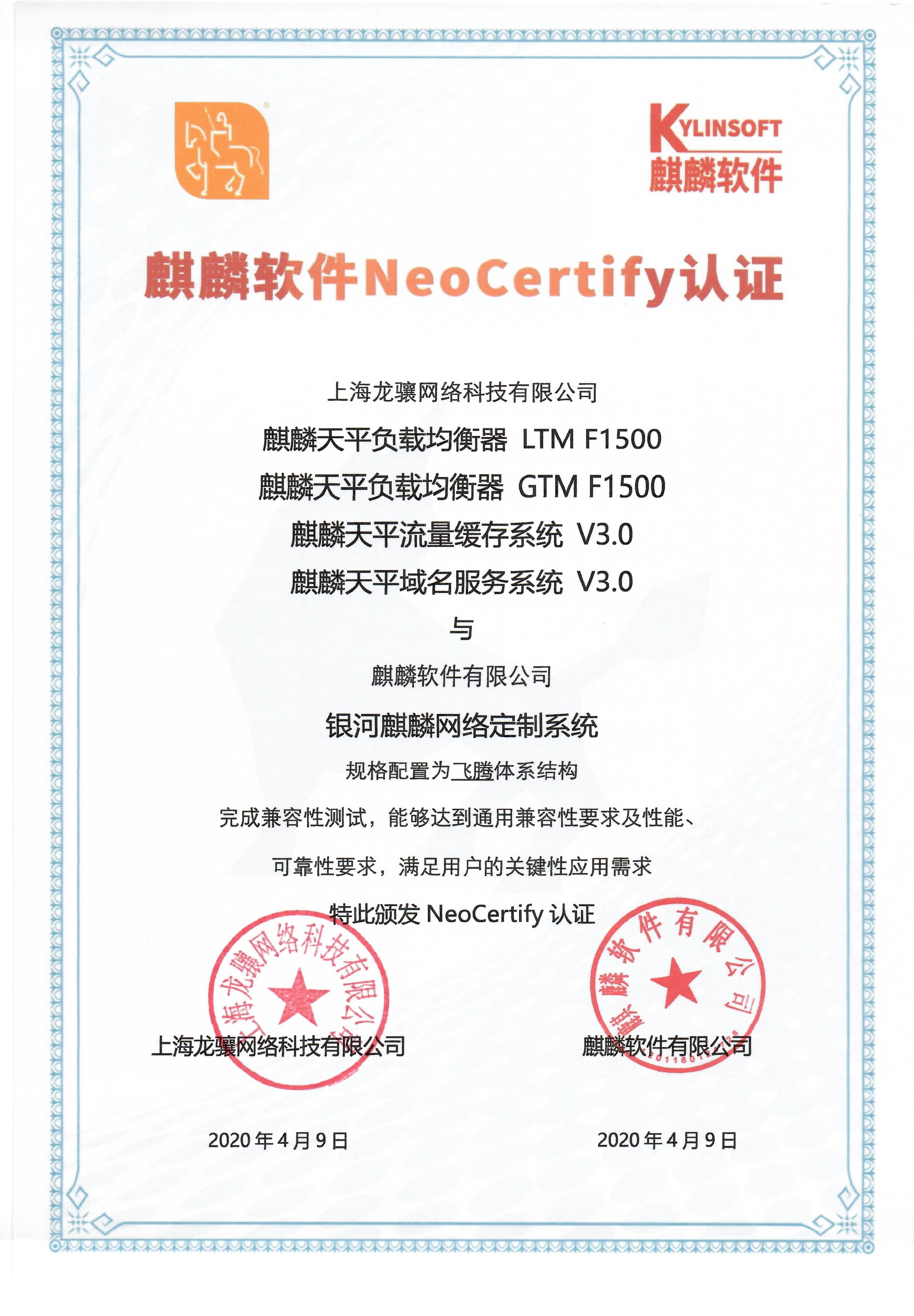 麒麟天平负载均衡系统荣获麒麟软件NeoCertify认证